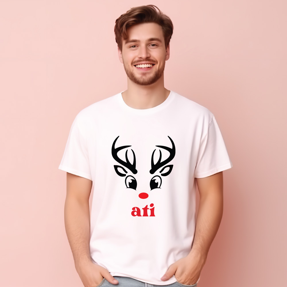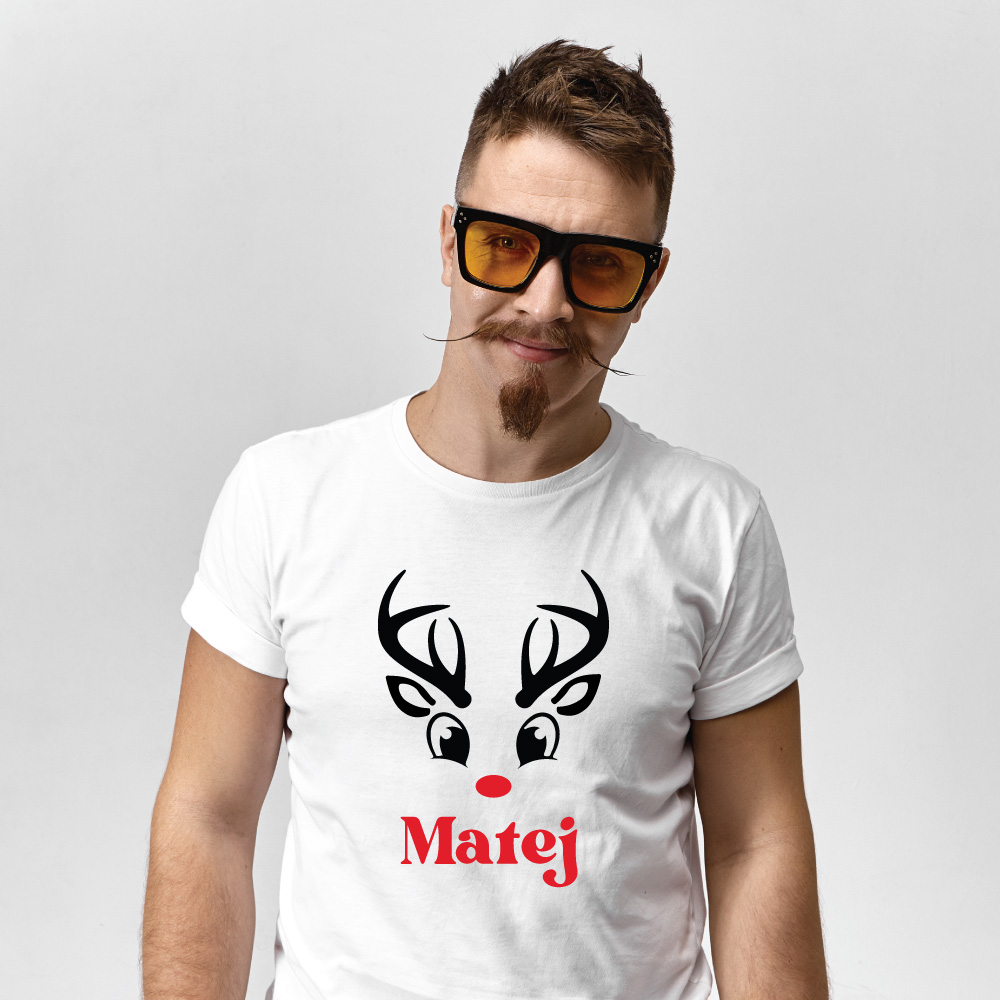 V prazničnem času zasijte z unikatno božično majico, okrašeno z ljubkim motivom jelenčka in vašim imenom ali nazivom po meri.